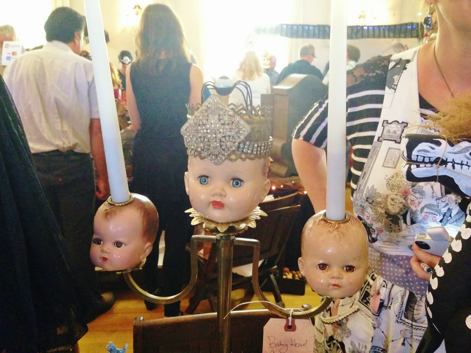 One of the main reasons we go to Petaluma this time of year is for "Halloween & Vine" . . . it is an amazing Halloween art show. It is not a very big show, but well worth the trip. Of course it appeals to me with my love of Halloween . . . and all of it's creepy decorations. I thought I was taking a lot of photos, but I wish I had taken more. I guess I enjoyed looking at things so much that I forgot to use the camera. We walked through a couple of times . . . I bought a doll and a cute spook made out of an old bottle - I will post pictures of them later. I also got so many wonderful ideas. I especially liked talking to the artist who made this candelabra in the last photo and her husband. Her idea behind her creepy doll head creations is that someone loved these dolls at one time . . . so she is just turning them into something that someone else will love. A little creepy - yes, but very unique.